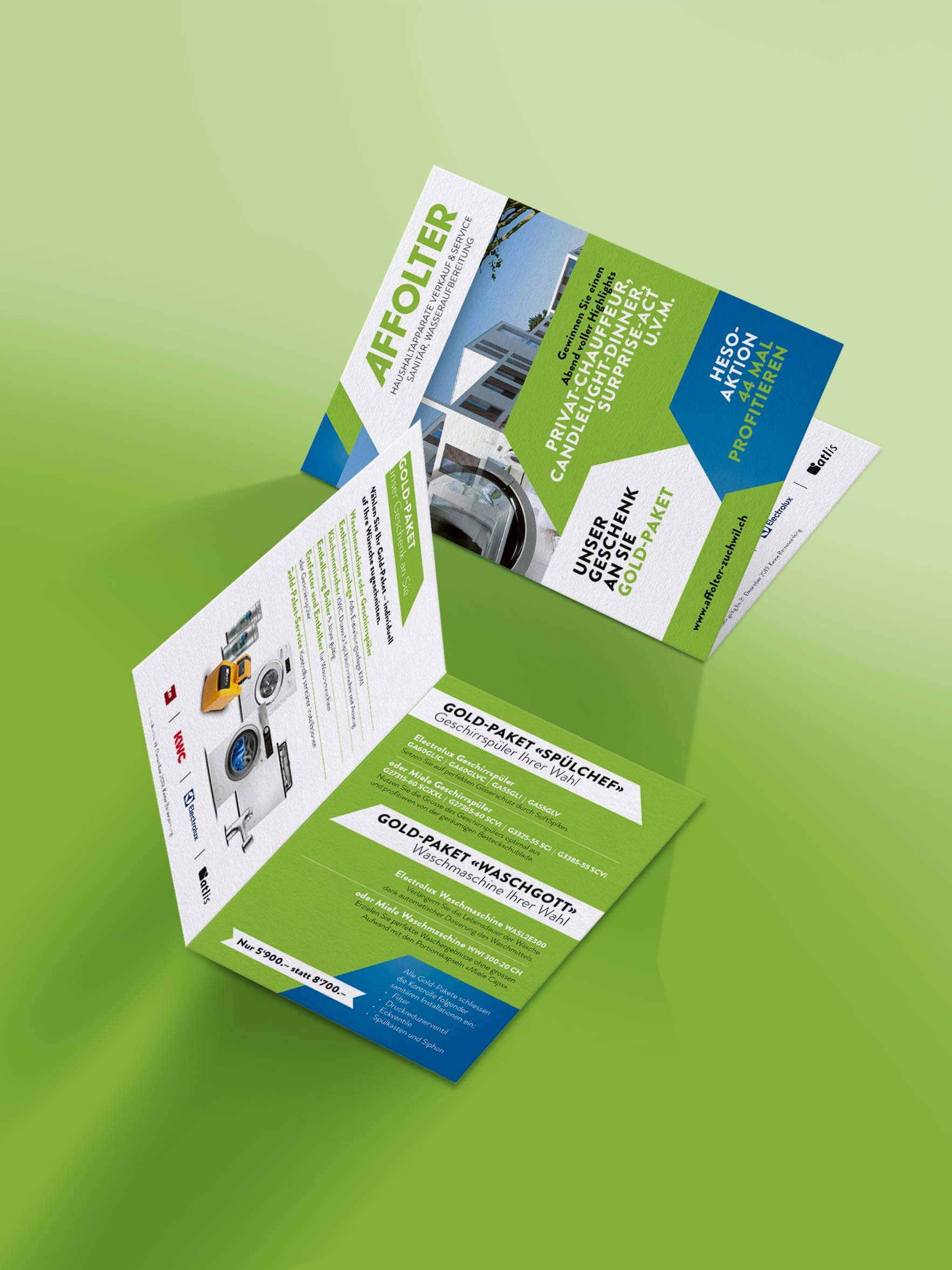 AFFOLTER steht seit Jahrzehnten für Expertise in Verkauf, Montage und Service von Hashaltsapparaten und Sanitärarbeiten. Für das Unternehmen entwickelten wir auf Basis des bestehenden Erscheinungsbilds ein konsistentes, zeitgemässes Kommunikationsdesign – inklusive Kampagnentexten, Verkaufsunterlagen und digitaler Werbemittel.
