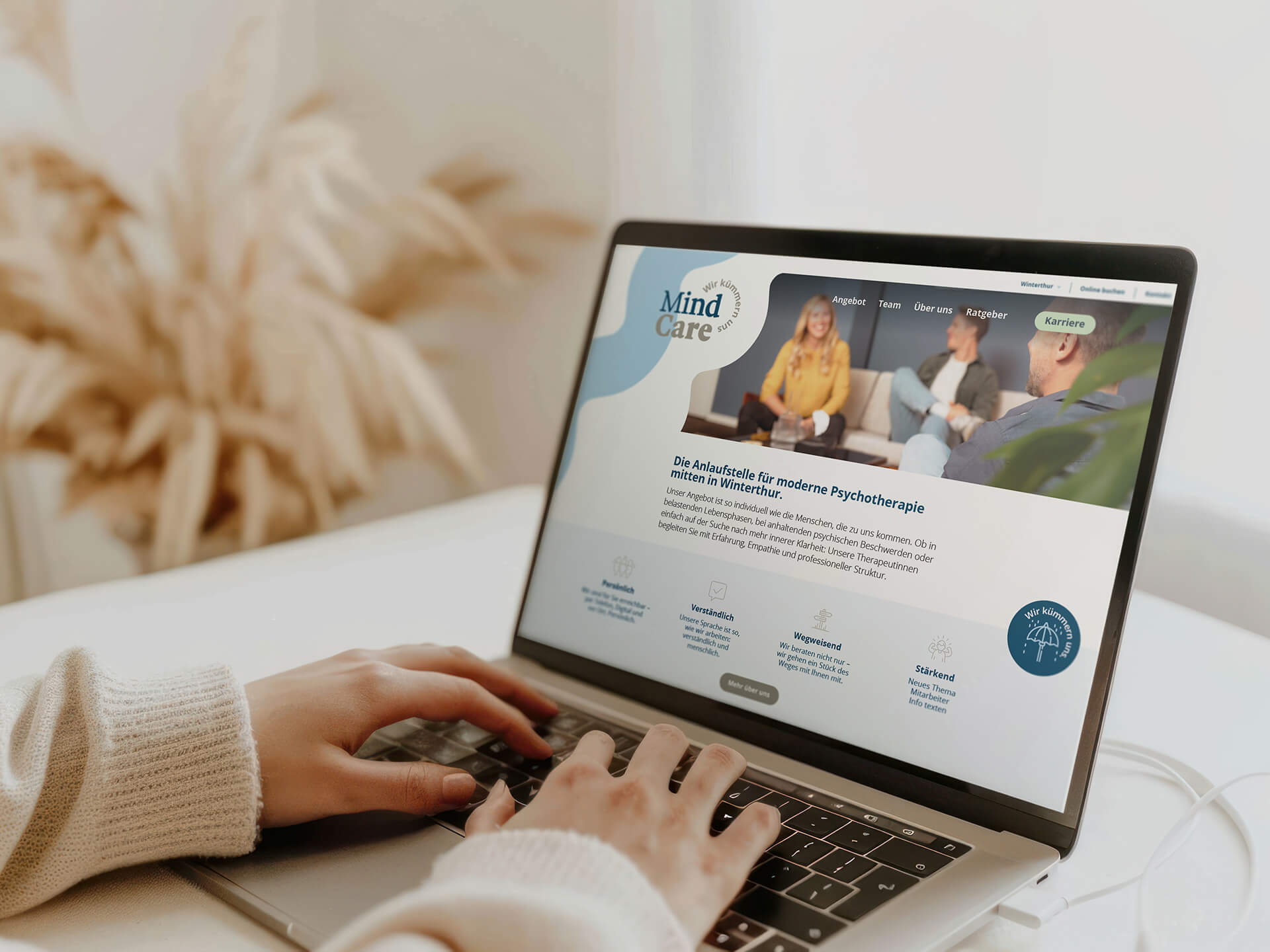 MindCare bietet professionelle psychologische Begleitung mit einem klaren Fokus auf Menschlichkeit, Ruhe und fachliche Kompetenz. Für die neue Praxis entwickelten wir einen zeitgemässen Markenauftritt und eine Website, die Vertrauen schafft, Orientierung bietet und die Haltung von MindCare konsequent nach aussen trägt.