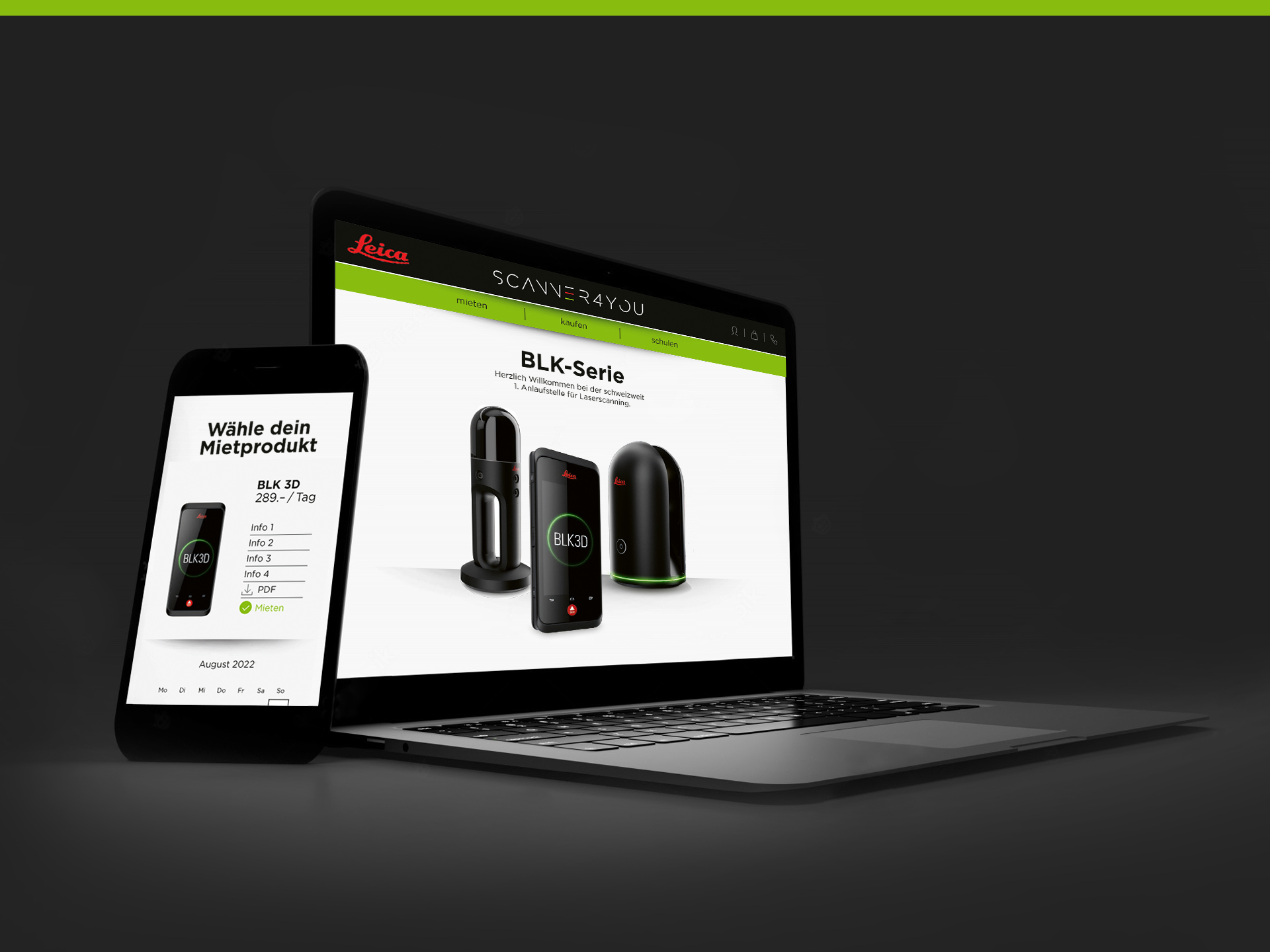 Schweizweit einzigartig macht Scanner4You die Leica BLK-Laserscantechnologie für Unternehmen einfach zugänglich – durch Miete oder Kauf. Für die Marke entwickelten wir einen prägnanten visuellen Auftritt und begleiteten unterschiedliche Kampagnen sowie Messe- und Digitalkanäle.
