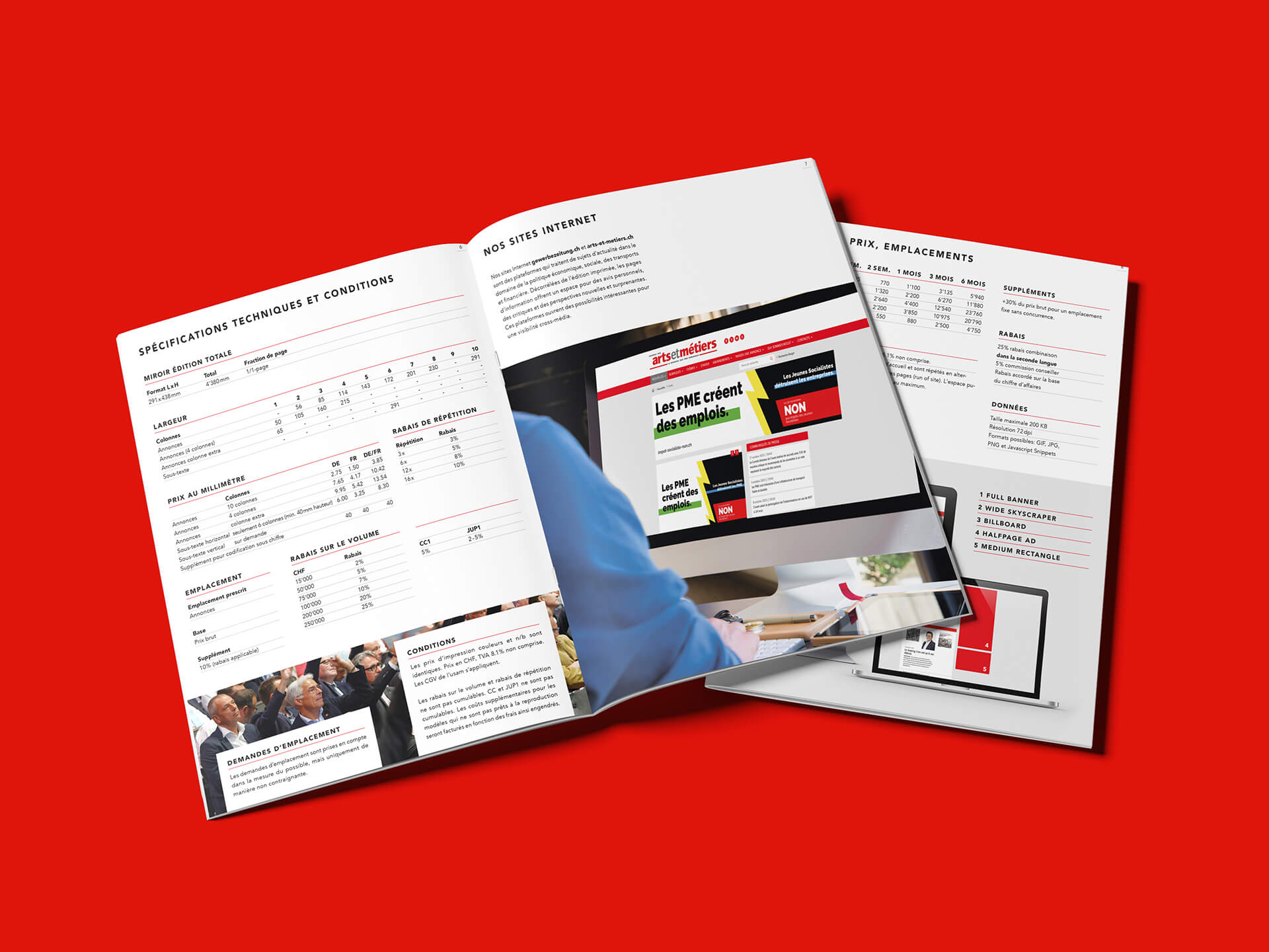 Der Schweizerische Gewerbeverband sgv informiert Unternehmen, Medienpartner und Werbetreibende jährlich über seine Werbeformate und Konditionen. Für die Tarifdokumentation gestalten wir sämtliche Inhalte in einem klar strukturierten Layout und setzen diese zweisprachig um.